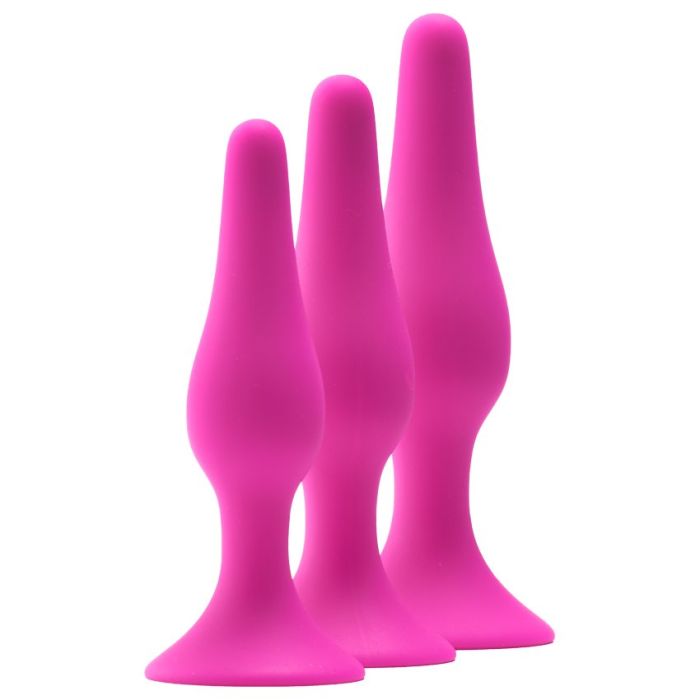 Deze buttplug set is speciaal gemaakt voor beginners op het gebied van anale seks. De buttplug set bestaat uit drie buttplug die elk een eigen formaat heeft. Begin met de kleinste en bouw het rustig op tot je de grootste plug kunt inbrengen. De plugs zijn gemaakt van heerlijk zacht en flexibel siliconen en zijn voorzien van een handige zuignap voor handsfree genot. Gebruik een glijmiddel op waterbasis om de buttplugs soepel in te brengen. Na gebruik kan je de plugs schoonmaken met water en een milde zeep of één van onze speciale toycleaners.