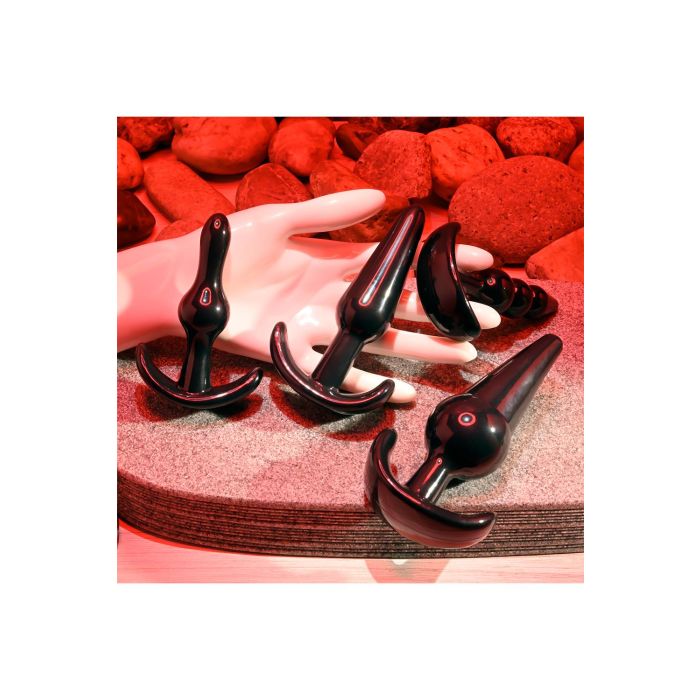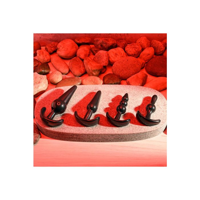 Verken anale plezier met deze veelzijdige kit die 4 uniek gevormde pluggen bevat. Flexibel en stevig, elke keuze biedt je een andere maat, ontwerp en uitzonderlijke ervaring - met een taps toelopende punt voor gemakkelijke inbreng en een brede basis voor veilig verwijderen.