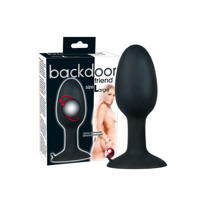 Zwarte buttplug met een stimulerende roterende kogel aan de binnenkant. Deze kogel beweegt heen en weer aan de binnenkant van de buttplug wat zorgt voor extra stimulatie! De buttplug heeft een ronde top en een sterke zuignap waarmee de plug op gladde oppervlakten te bevestigen is. Een bijzondere buttplug voor extra genot.