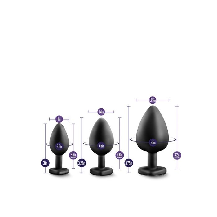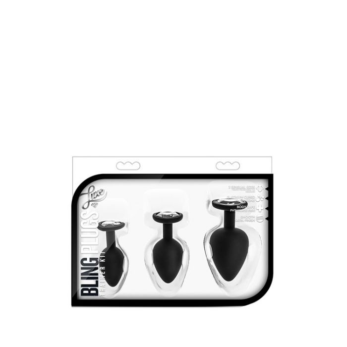 Deze buttplug training set met blingbling kan je helpen met het trainen van je anus voor het gebruiken van anale sextoys. De anus is zeer rekbaar, maar het vraagt vaak enige training om zonder pijn een dildo of grote buttplug in te brengen. Daarbij kan deze set prima helpen. Begin met het kleinste model en als dat goed gaat kun je overstappen naar een grotere maat. De buttplugs hebben een fraaie hartvormige basis, zodat je er ook nog eens super sexy uitziet voor je partner. De veilige brede basis zorgt ervoor dat je buttplug noot in zijn geheel in de anus zal verdwijnen, verwijderen is eenvoudig.