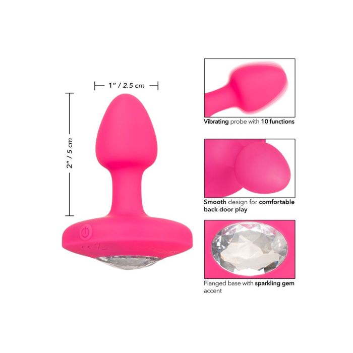 De Buttplug Vibrating Probe Small van CalExotics is gemaakt van flexibele siliconen. Het edelsteenaccent voegt een vleugje sprankeling toe aan elk achterdeuravontuur. Dankzij de taps toelopende vorm is plug gemakkelijk in te brengen en door de brede basis kun jij comfortabel genieten. De 10 vibratiestanden zijn eenvoudig te bedienen op het speeltje zelf. Laad de buttplug gemakkelijk op in 2 uur met de bijgeleverde USB oplaadkabel.