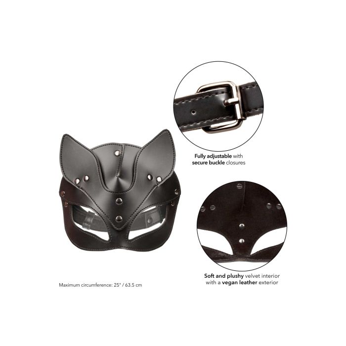 Ontketen aantrekkingskracht met de Euphoria Collection Cat Masker, een betoverend accessoire voor verhoogde intimiteit. Dit masker is ontworpen met een veilige gespsluiting, waardoor je de pasvorm kunt aanpassen voor een comfortabele en uitgebreide speelse verkenning. De binnenkant is gemaakt van zacht fluweel, terwijl de buitenkant is vervaardigd van veganistisch leer, wat zorgt voor een luxueuze zintuiglijke ervaring.