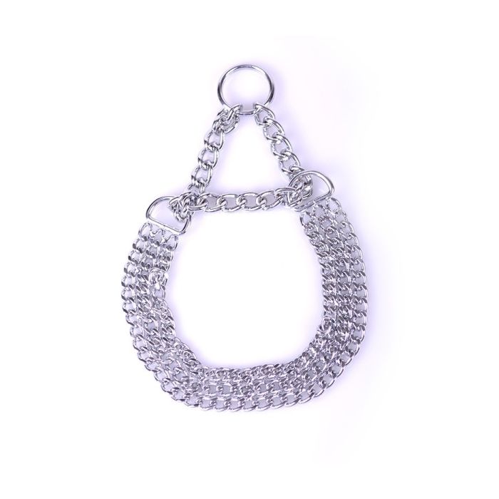 Deze prachtige ketting in de vorm van een brede halsband is een welkome toevoeging op je bdsm collectie. Hij heeft 3 rijen aan kettingen en is te gebruiken voor diverse bdsm speeltjes. Met 1 O-ring en 2 D-ringen waaraan jij bijvoorbeeld een leash aan kan klikken. Hij is ook perfect te dragen om je kinky outfit mee af te maken. Ben jij een echte meesteres? Laat met deze ketting dan zien dat jij de baas bent en straal dominantie uit.