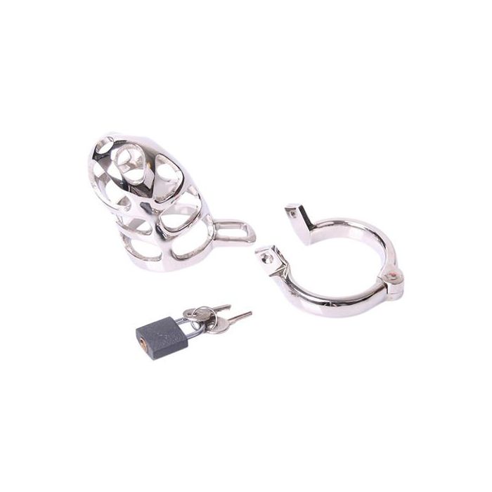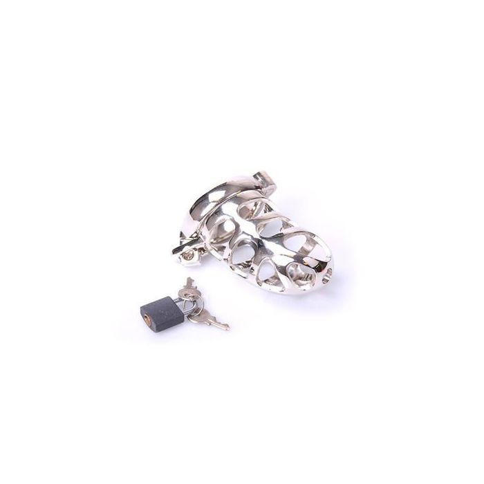 Laat jezelf leiden door je meester of meesteres met deze kuisheidskooi. Wanneer je deze kooi draagt kan de penis geen kant meer op! Af te sluiten met een slotje en sleuteltje.