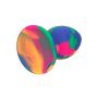 Bevrijd je wilde kant en geniet van verreikend plezier met de Cheeky Medium Swirl Plug - Medium. Deze gedurfde anale plug heeft een trendy tie-dye ontwerp waardoor de plug een speelse uitstraling krijgt. Dankzij de afgeronde taps toelopende vorm zal deze plug jou veel plezier bieden. Met de handige zuignapbasis kun je extra brutaal worden door hem op een vlak oppervlak te monteren voor handsfree stimulatie. De flexibele plug is gemaakt van lichaamsveilige siliconen voor extra comfort.