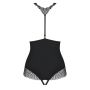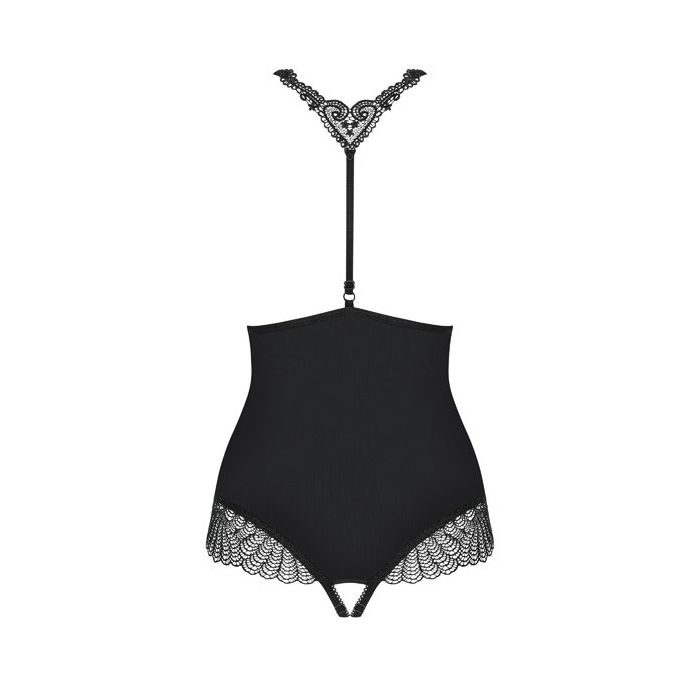 De body heeft doorschijnende kanten cups en een open kruis voor een heerlijk uitdagend effect. De smalle schouderbandjes komen bovenaan de rug bijeen bij een prachtig geborduurd detail. Langs het open kruis lopen smalle verstelbare bandjes. De spannende body is afgewerkt met subtiele details.