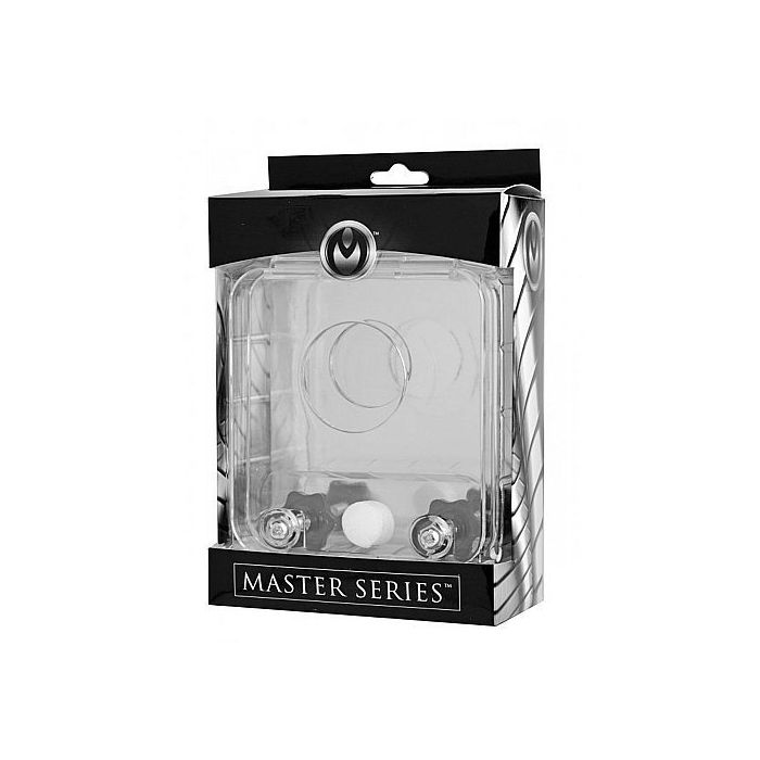 Groot liefhebber van kinky bdsm spelletjes en zoek je graag de grenzen van pijn en genot op? Deze transparante Cock and Ball Crusher van Master Series is gemaakt voor mannen die wel houden van een beetje pijn en het opwindende gevoel van ball torture. Dit seksspeeltje zorgt voor intense druk op je ballen wanneer je de twee transparante plaatjes naar elkaar toe schuift. Je kunt helemaal zelf bepalen hoe strak je de bdsm Cock and Ball Crusher aandraait met de schroeven aan de zijkant. Maak het nog spannender door niet zelf te bepalen hoe strak je hem aandraait, maar de controle aan je partner of meesteres te geven. Super kinky! De Cock and Ball crusher is waterproof en na gebruik gemakkelijk schoon te maken.