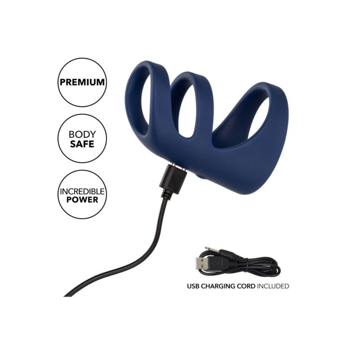 De Cock Cage Rechargeable Triple komt uit de Viceroy serie van het merk CalExotics. De meerdere ringen geven meer steuning om prestaties te verbeteren. De rekbare, flexibele en stevige cockring is gemaakt om het uithoudingsvermogen te vergroten, de gevoeligheid te verbeteren en superieure erectieondersteuning te bieden. Triple is gemaakt van premium vloeibare siliconen. Het materiaal is zacht, glad en duurzaam. De 10 vibratiestanden zijn gemakkelijk te bedienen op het speeltje zelf. Laad de cockring op in 2.5 uur met de bijgeleverde USB oplaadkabel.