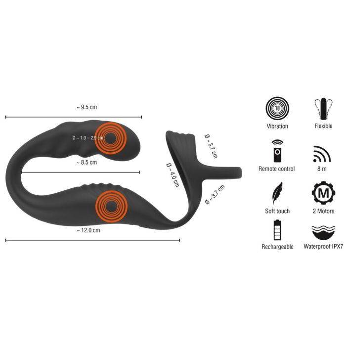 Maak je klaar voor een ongeëvenaarde ervaring met de Cock Ring met RC Prostaat vibrator van Rebel! Dit innovatieve speeltje is ontworpen voor de ultieme verwennerij van je penis, perineum en prostaat. Het unieke harnas met twee rekbare ringen zorgt ervoor dat alles perfect op zijn plaats blijft, terwijl de krachtige vibrators je opwindende sensaties bieden. Met maar liefst 10 vibratiestanden per motor, die je afzonderlijk kunt bedienen, kun je de intensiteit helemaal afstemmen op jouw wensen. Of je nu alleen speelt of samen met een partner, de afstandsbediening met een bereik van 8 meter maakt het eenvoudig om de controle te houden, zelfs op afstand.