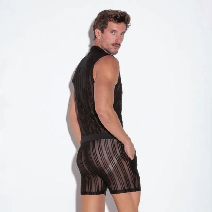 Code 22 Mesh Gestreepte Jumpsuit - Zwart