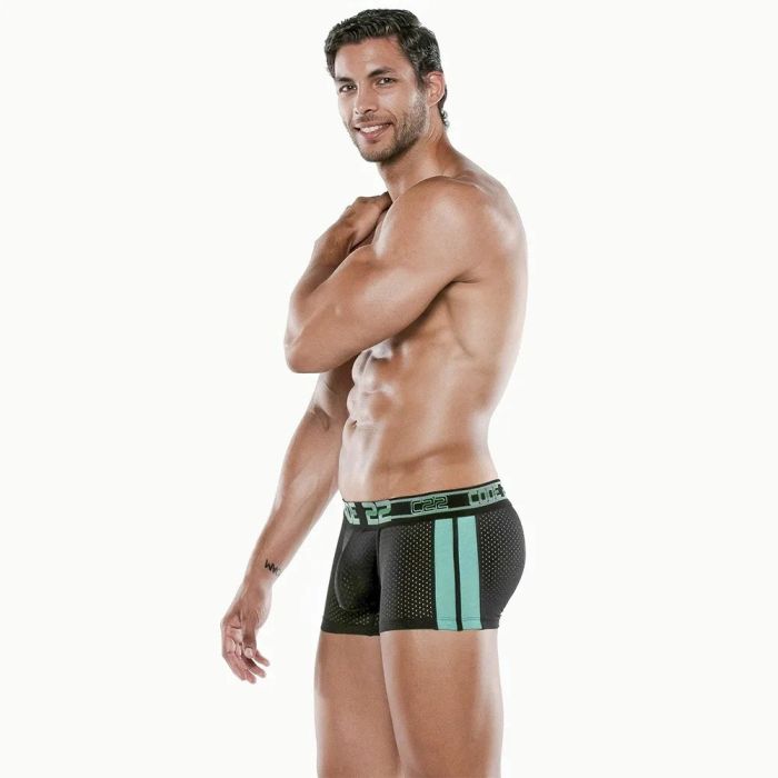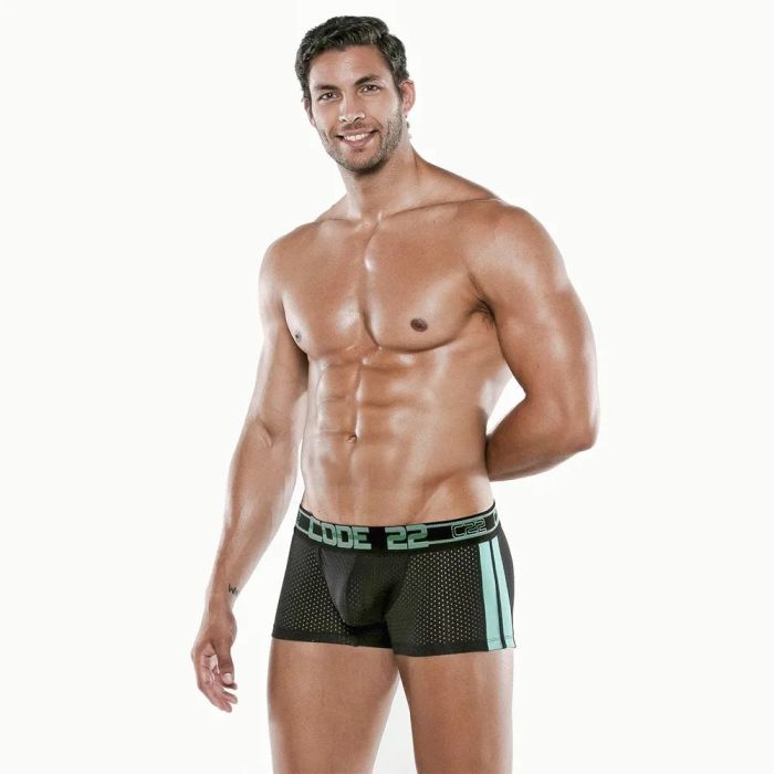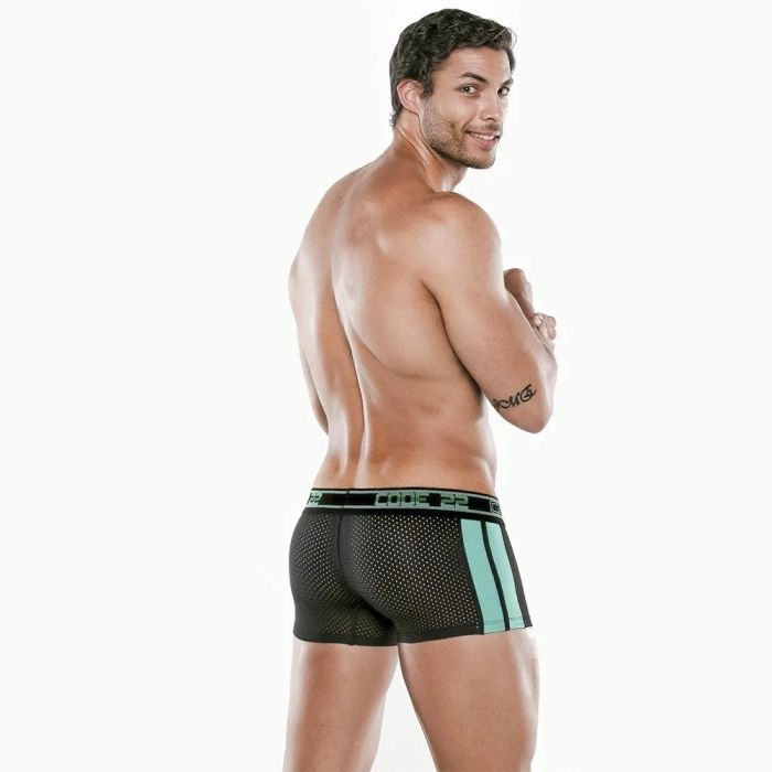 Dankzij de Code 22 Motion Push-Up Boxershort zie jij er super sexy uit met een sportieve touch. Daarnaast is de boxershort gemaakt van fluweelzachte materialen voor een geweldig draagcomfort. Ook beschikt de boxershort over een fijne gaatjes structuur waardoor de boxershort ook nog eens erg luchtig draagt zodat jij deze boxershort gemakkelijk onder elk kledingstuk kunt dragen. De blauwe strepen aan de zijkanten zorgen voor een contrasterend effect en een sportieve uitstraling.