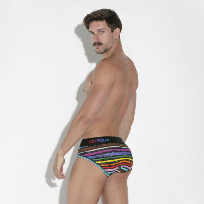 De slip is uitgerust met een superzachte elastische tailleband, die niet alleen zorgt voor een optimale ondersteuning, maar ook voor een luxueus draagcomfort. De tailleband is versierd met het iconische CODE 22-logo, dat in de levendige kleuren van de PRIDE-vlag is uitgevoerd. Dit detail benadrukt niet alleen de toewijding van het merk aan inclusiviteit en diversiteit, maar voegt ook een speelse en opvallende touch toe aan het ontwerp. De combinatie van functionaliteit en esthetiek maakt deze slip tot een must-have in elke garderobe.