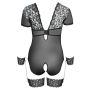 Het ontwerp van dit body is niet alleen visueel aantrekkelijk, maar ook functioneel. De haaksluiting aan de achterzijde maakt het aan- en uittrekken eenvoudig, terwijl het slipje open is bij het kruis, wat zorgt voor een ondeugende verrassing. De voorkant is versierd met delicate kant, wat een romantische touch geeft, terwijl de achterkant volledig van Powernet is gemaakt voor een strakke en flatterende look. Dit body is ideaal voor een speciale gelegenheid of een intieme avond, waarbij je zeker de aandacht zult trekken.