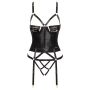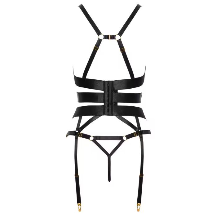 De bandjes op de rug zijn ingenieus verbonden met een haakje, wat niet alleen zorgt voor een strakke look, maar ook voor extra ondersteuning. De vele cupbandjes en jarretelbandjes zijn volledig verstelbaar, zodat je altijd de ideale pasvorm kunt creëren. En laten we de strappy string niet vergeten, die niet alleen spannend is, maar ook een gedurfde openingen bij het kruis heeft voor een extra vleugje verleiding.