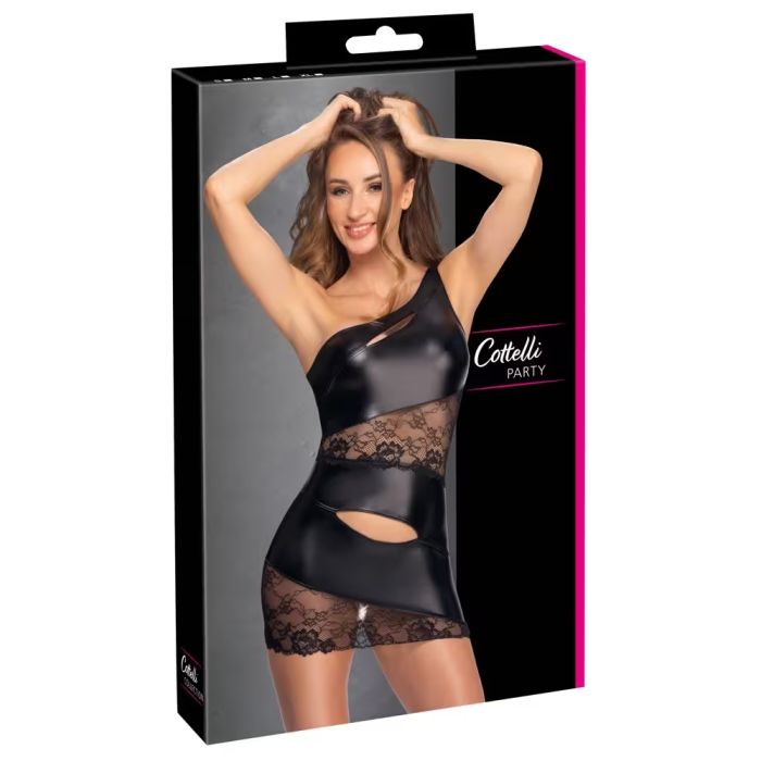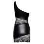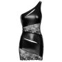 Deze jurk is ontworpen in een asymmetrische one-shoulder stijl die je schouders prachtig accentueert. De geraffineerde materiaalmix met een coole matte look zorgt voor een luxe uitstraling, terwijl het fijne kant in het midden en aan de zoom een speelse, verfijnde touch toevoegt.