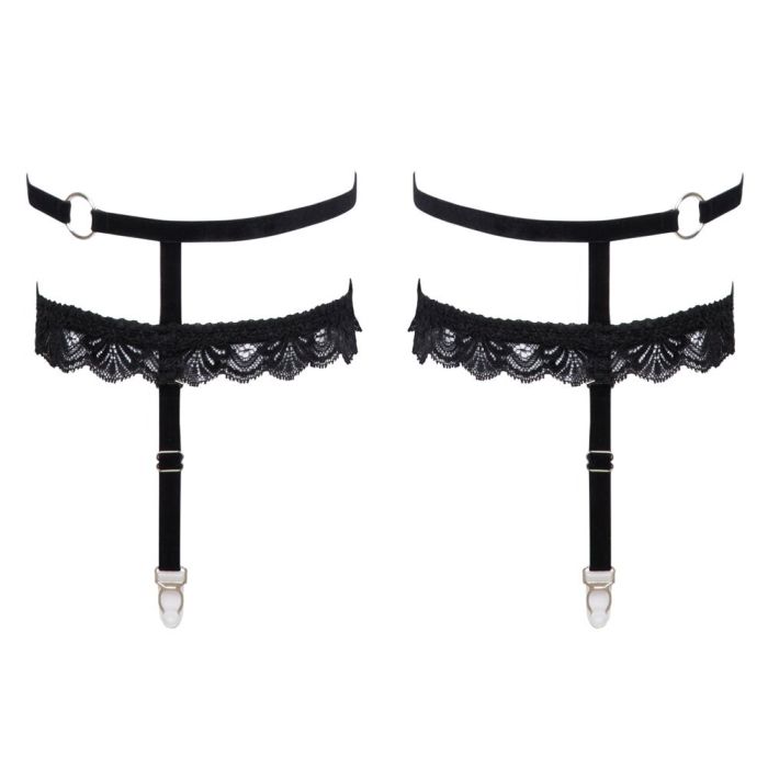 De afneembare bretels zijn een opvallend kenmerk van deze kousenband, waardoor het mogelijk is om de look aan te passen aan verschillende stijlen en voorkeuren. De bretels zijn in lengte verstelbaar, wat zorgt voor een perfecte pasvorm en optimale ondersteuning. Dit maakt het dragen van de kousenband niet alleen esthetisch aantrekkelijk, maar ook praktisch. De elastische band rondom zorgt ervoor dat de kousenband stevig op zijn plaats blijft, zonder in te boeten op comfort.