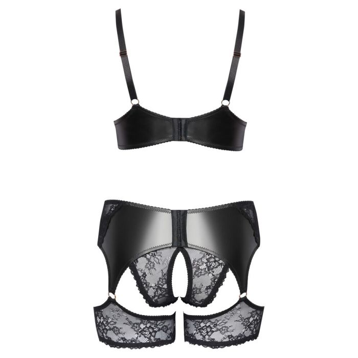 Cottelli Jarretel Lingerie Set Kant Wetlook - Zwart