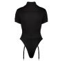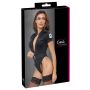 Deze zwarte jarretelbody van Cottelli is ontworpen in politie stijl en heeft een opvallend embleem op de linkerarm. Het materiaal is zacht en soepel dankzij de mix van stretchmateriaal met een matte, glanzende wetlook. De body heeft een hoge hals, strikbandjes en halve mouwen, samen met schouder- en borstflappen voor de kenmerkende politie-look.