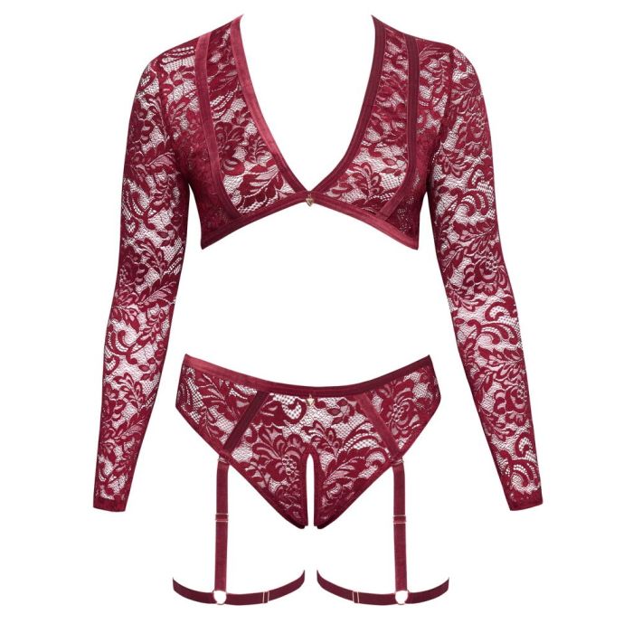 Cottelli Kanten Spannende Lingerie Set - Donkerrood