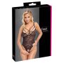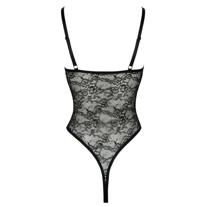 Cottelli Kanten Stringbody Gebloemd Open Kruis - Zwart
