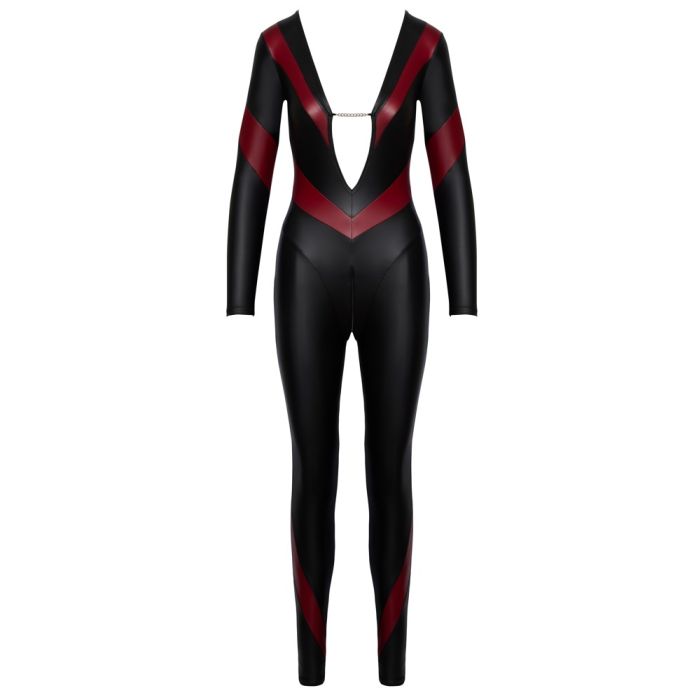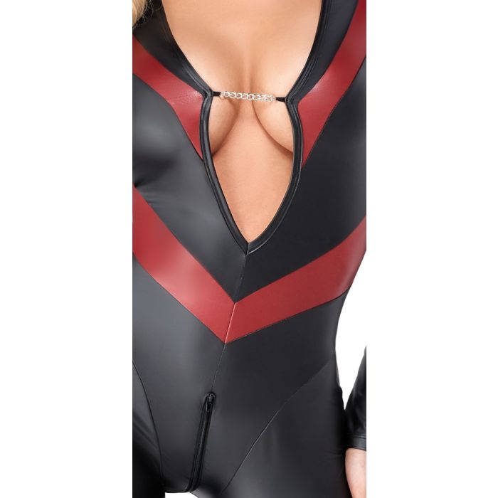 Cottelli Lingerie Tweekleurige Matte Jumpsuit - Rood/Zwart