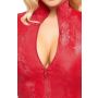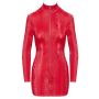 Deze prachtige rode slangenleren jurk van Cottelli is een absolute eyecatcher! Het strakke en extra korte ontwerp zorgt voor een sexy en trendy uitstraling. De lange mouwen en hoge opstaande kraag geven de jurk een chique en elegante touch. De rode slangenleerlook maakt dit jurkje helemaal onweerstaanbaar en perfect voor een avondje uit of een speciale gelegenheid.