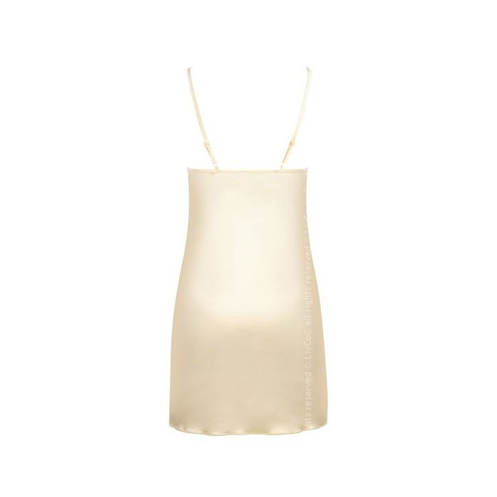 In de Csenge Chemise ben jij het zonnetje in huis! Deze chemise komt uit de Sunglow lijn van Livco Corsetti. Het elegante jurkje is gemaakt van gladde stof met een satijn geweven structuur. Dit geeft een glanzend effect. De gele kleur zorgt voor een zonnig uiterlijk. Over de cups is het nachtjurkje versierd met sierlijk borduursels en geschulpte randjes.
