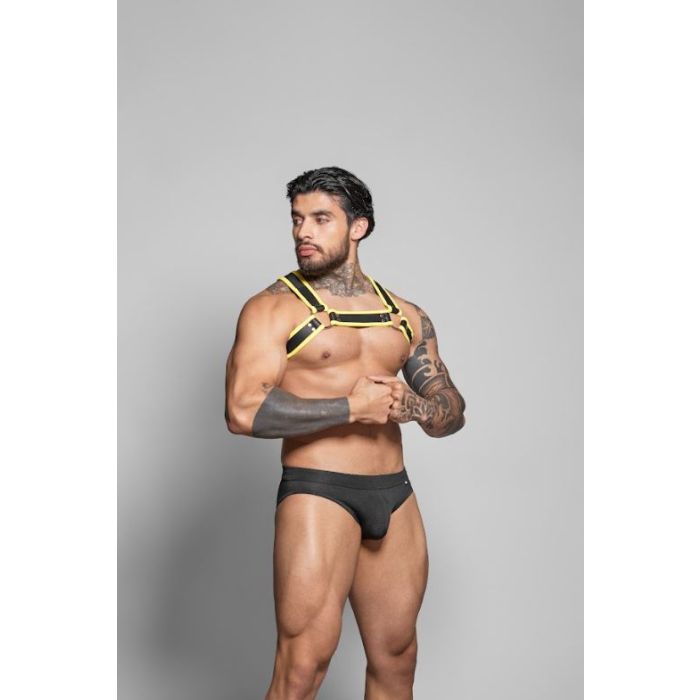 Dit harnas is de perfecte aanvulling voor elke man die zijn gespierde figuur wil accentueren en een krachtige uitstraling wil hebben. De Dale Mas Biker Harnas in zwart en geel is ontworpen om jouw bovenlichaam een extra brede en gespierde look te geven. De combinatie van de stoere kleuren zorgt ervoor dat je niet alleen sexy, maar ook mysterieus overkomt. Of je nu naar een feestje gaat of gewoon een avondje uit, dit harnas zal zeker de aandacht trekken en je zelfvertrouwen een boost geven.