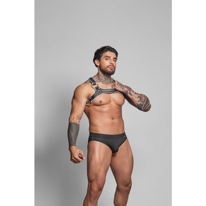 Dit harnas is de perfecte aanvulling voor elke man die zijn gespierde figuur wil accentueren en een gedurfde uitstraling wil creëren. De Dale Mas Biker Eco Harnas in zwart en wit is ontworpen om jouw bovenlichaam een extra brede en gespierde look te geven. De combinatie van de stoere kleuren zorgt ervoor dat je er niet alleen sexy uitziet, maar ook een mysterieuze vibe uitstraalt. Of je nu naar een feestje gaat of gewoon je zelfvertrouwen wilt vergroten, dit harnas is de ideale keuze.
