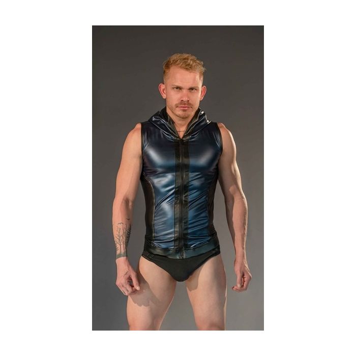 Het Dale Mas Rebel Hoodie Vest Blauw zwart is een stoer en rebels kledingstuk met de tekst "bad boy" erop geschreven. Deze hoodie heeft een kinky en speelse uitstraling. Het materiaal voelt comfortabel en strak aan, waardoor het perfect aansluit op je lichaam. Het design van de hoodie zorgt ervoor dat je armen mooi uitkomen. Of je nu naar een feestje gaat of gewoon een luie zondagmiddag hebt, met deze stijlvolle top ben je altijd een schot in de roos.