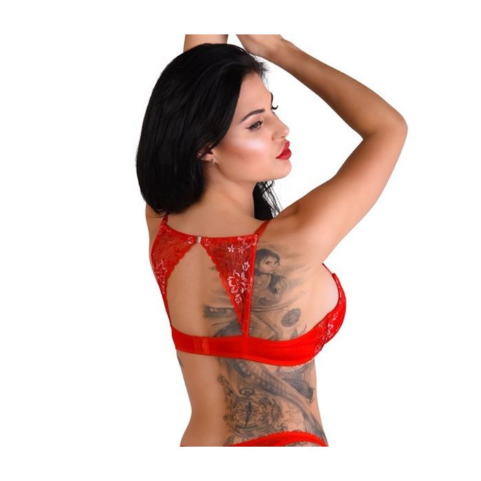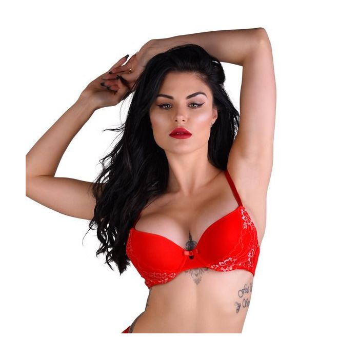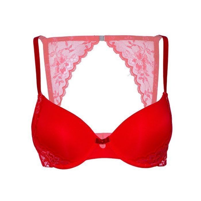 De Daring Racerback Push Up BH - Rood is een fantastische bh voor een geweldige look! Deze bh heeft gladde cups met ondersteunende beugels en zachte push up vulling. Aan de randen zijn de cups overtrokken met sierlijk bloemen kant en tussen de cups is een keyhole uitsparing met strikje aangebracht.