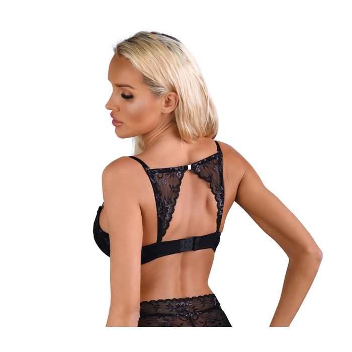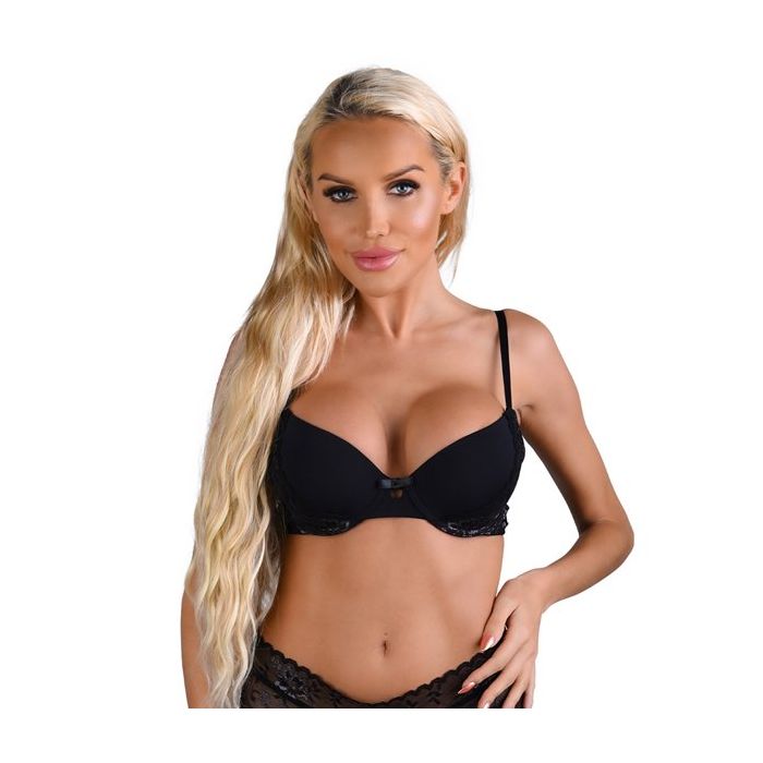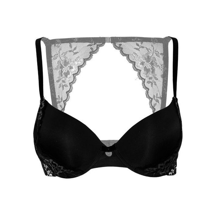 De Daring Racerback Push Up BH - Zwart is een fantastische bh voor een geweldige look! Deze bh heeft gladde push up cup voorzien van ondersteunende beugels. Aan de randen van de cups is sierlijk bloemen kant aangebracht en tussen de cups zit een strikje met een kleine uitsparing.