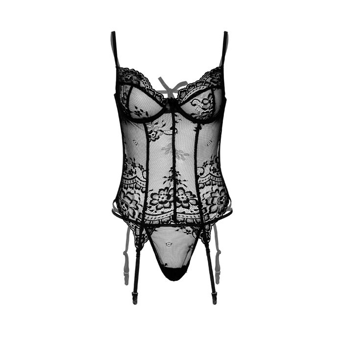Ga voor een romantische look met de Daring Underwire Cami Jarretel Top. Deze tweedelige set bestaat uit een jarretel top en een bijpassende G-string. De top en string zijn gemaakt van weelderig bloemen kant en smalle bandjes. De smalle bandjes geven een uitdagend, open design.