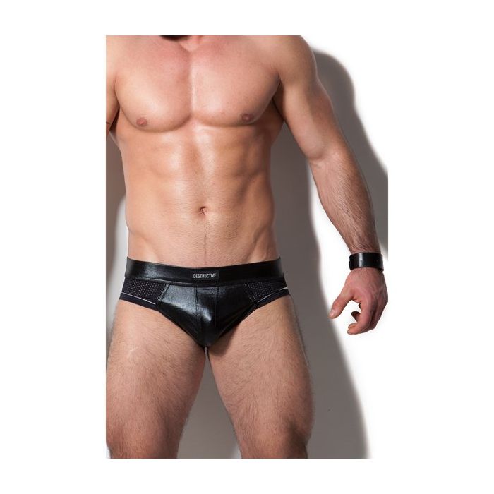 De kunstleren buidel heeft een ergonomisch design wat zorgt dat jij jouw zaakje in stijl op orde hebt. De elastische tailleband is ook bekleed met kunstleer en voorzien van het Destructive logo. Langs de fijne, elastische zomen is een zilverkleurige lijn aangebracht voor een stijlvol eindresultaat.