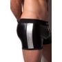 De Destructive Metal Mesh Zipper Short is een uitdagende short met een elastische tailleband. De short is gemaakt van glanzend zwart rekbare stof en heeft de buidel een ergonomisch design. In de buidel is een rits gezet en aan de zijkanten is de short afgewerkt met metal mesh.