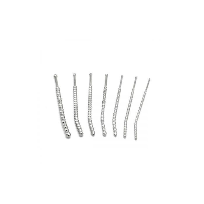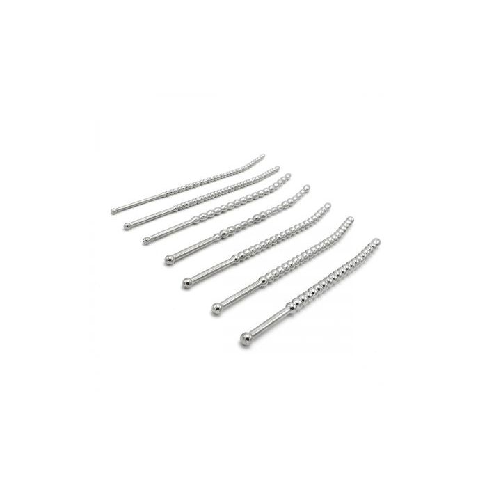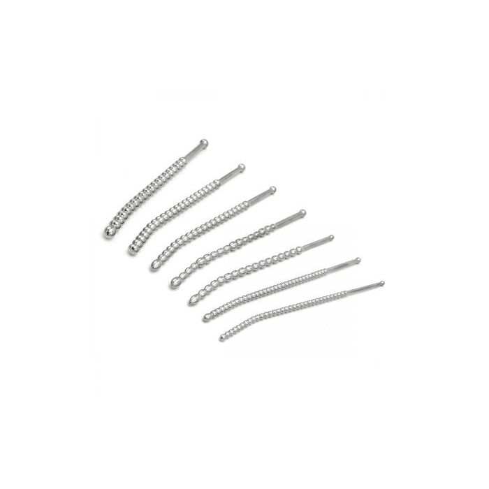 De Beaded Trainer Dilator 7-delige set is ontworpen om een verbeterde ervaring te bieden bij elk gebruik. Gemaakt van hoogwaardig roestvrij staal, bevat deze set 7 uniek ontworpen dilators, elk met een rechte zijde en een gebogen, geparelde zijde voor verschillende sensaties.