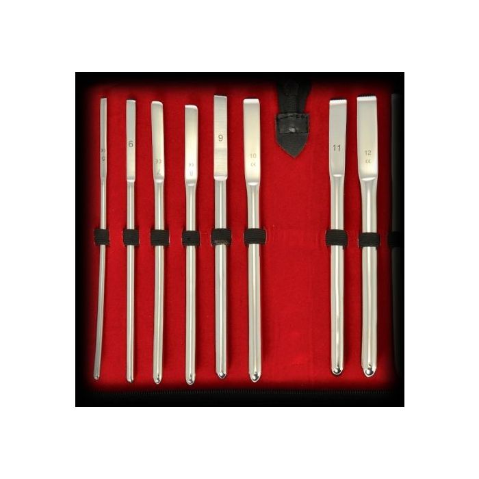 De inhoud van de etui bevat maar liefst 8 verschillende dilators oplopen van 5 tot en met 12mm. Deze set is vakkundig gemaakt van gepolijst RVS, zijn superglad, en de ideale toys om je plasbuis te stimuleren. In de plasbuis bevinden zich super gevoelige zenuwuiteinden en door deze te stimuleren kan je ongekend heerlijk genieten. Zorg ervoor dat je de dilators na gebruik grondig reinigt en desinfecteert met een toycleaner om narigheden te voorkomen. Ga dus uiterst clean te werk en deel je dilators nooit met een ander. Door deze set aan te schaffen heb je 8 verschillende dilators zodat je langzaam het spel opbouwen kan. Ontdek en verleg je grenzen met deze geweldige dilator set
