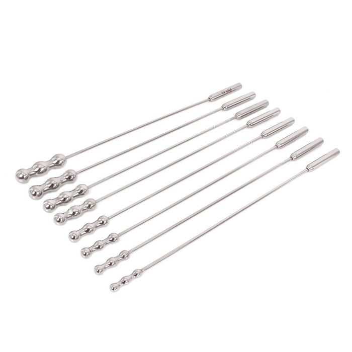 Deze Dilator Set met Beads 8 St.is perfect om te trainen. De RVS dilators glijden gemakkelijk en soepel de plasbuis in voor een heerlijke stretch en het zal je veel plezier bezorgen tussen de lakens. Ontdek het intense genot van dit spel! De plasbuis heeft de hoogste concentratie zenuwuiteinden in je hele lichaam waardoor jij gegarandeerd tot heerlijke hoogtepunten zal komen.