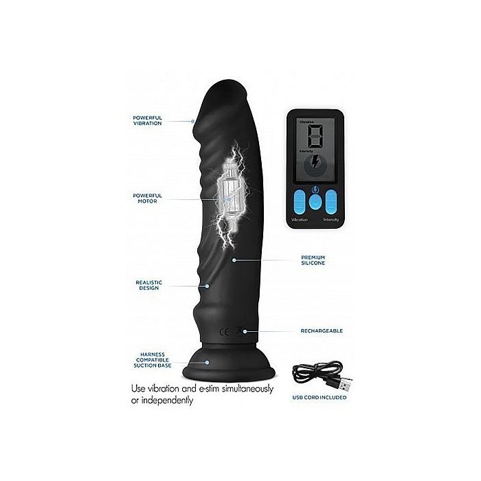 Deze geweldige Dildo 5X Vibrerende & E-Stim is gemaakt om je binnenkant te elektrificeren! Met deze dildo voel je de unieke tinteling van electro-play. Deze dildo maakt het gemakkelijk om te genieten van de wereld van elektrische stimulatie in een handig en toegankelijk pakket.