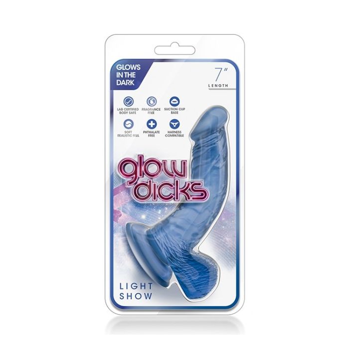 Dildo Blauw met zuignap - Glow Dicks Light Show