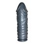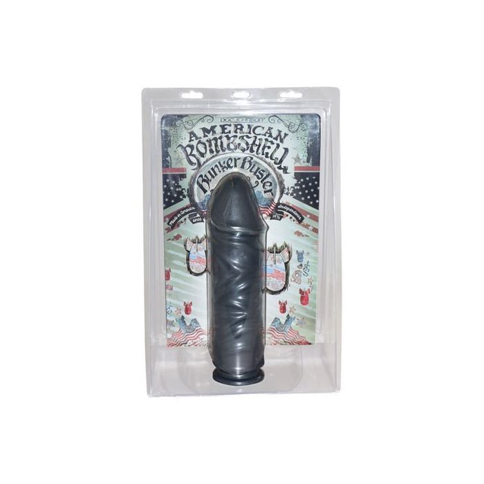 Megagrote dildo, uit de serie American Bombshell van Doc Johnson. Behalve groot is deze kanjer ook lekker stevig, dankzij de Sil-a-Gel formule. Onderaan zit een zuignap waarmee je deze verwenner met zijn dikte van 7,5 cm en lengte van 25 cm rechtop kan zetten, voor handsfree fun. Bunker Buster heeft een natuurgetrouwe structuur, met een echte eikel, voorhuidplooien en dikke aders.