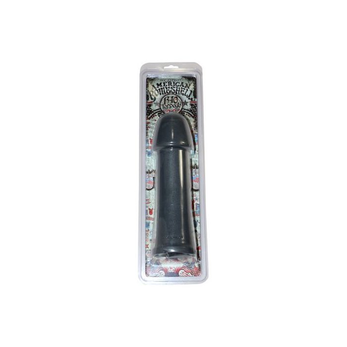 Doc Johnson presenteert een nieuwe serie mega-dildo's: American Bombshell. De B10 Torpedo is 25 centimeter lang en zijn kop is 7 cm dik. Een echt joekel dus. De onderzijde is een zuignap, dus kan je 'm ook makkelijk handsfree gebruiken. Het materiaal voelt zwaar en zacht aan, voor megaheftige verwennerijen.