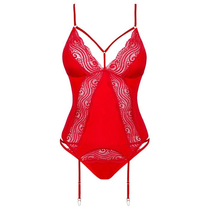 Een stijlvolle korset in de kleur van de liefde, namelijk rood! Deze nauwsluitende korset en slip van het bekende merk Obsessive zal je vrouwelijke vormen goed benadrukken. Daarnaast heeft deze sensuele korset ook prachtige inzetstukken in kantlook. De stretchbandjes zijn verstelbaaar zodat je de korset gemakkelijk passend kunt maken. De bijpassende slip is rekbaar en maakt de look helemaal compleet.