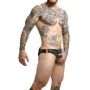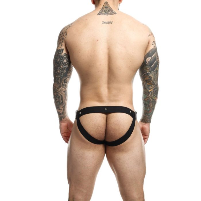 Deze hoogwaardige Cockring Jockstrap heeft brede bandjes aan de voorkant die op de heupen zitten en zorgen voor een comfortabele en ondersteunende pasvorm. De metalen studs zorgen voor een extra dosis interesse, terwijl de blote achterkant een unieke look geeft. Je zou het zelfs als ondergoed kunnen dragen voor die naadloze look onder strakke kleding.