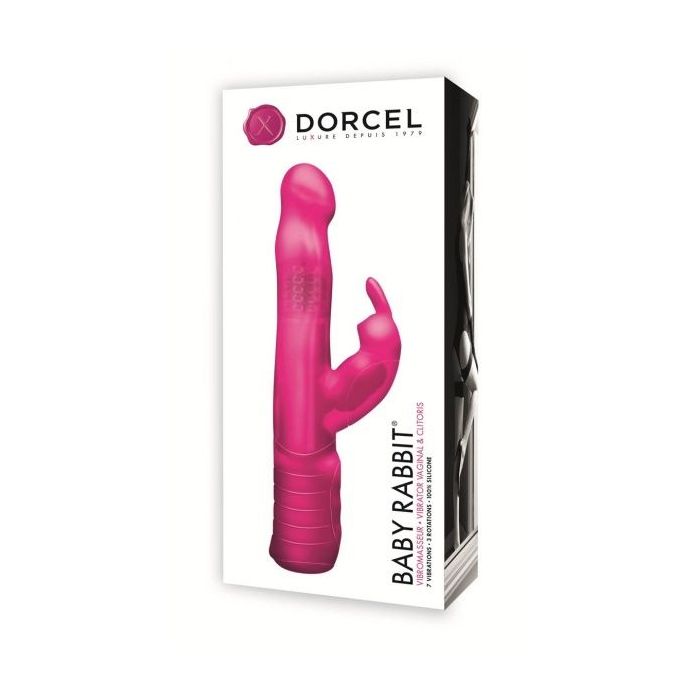 De Baby Rabbit vibrator van het merk Dorcel heeft 7 vibratie snelheden, 3 rotatie niveaus.
