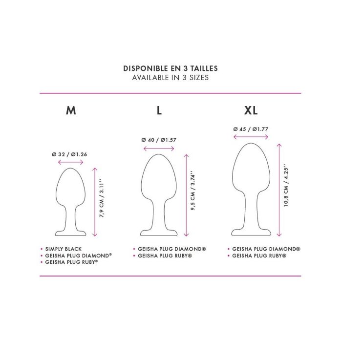 Wil jij wat groter? Ga dan voor deze Dorcel Geisha Buttplug Ruby - L van Dorcel. Deze buttplug heeft een grotere afmeting en zal jou dus wat meer vulling geven. De buttplug heeft een klassiek ontwerp met een taps toelopende vorm zodat hij makkelijk bij je naar binnen zal glijden. De onderkant van de buttplug is voorzien van een fonkelende steen die zich, wanneer jij doggy voor je lover zal zitten zeer spannend zal onthullen. Doordat de buttplug een vlakke basis heeft, zal deze netjes op zijn plek blijven zitten.