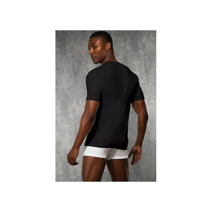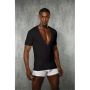 Show je borstkas met de Doreanse T-shirt met Lage V-Hals - Zwart. Dit schitterende shirt mag niet ontbreken in je kast want jij kan er werkelijk alle kanten mee op. Draag het op je jeans of met een sexy boxer om in de slaapkamer je partner te verrassen. De diepe V-hals geeft het shirtje een verleidelijke uitstraling. Het t-shirt heeft een kort mouwtje en een nauwsluitende pasvorm.