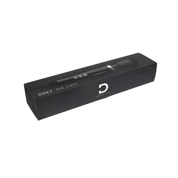 Het formaat is hetzelfde als de standaard Doxy (zodat het de standaard formaat attachments kan nemen). Het is echter zwaarder op 830 gram (680 gram zonder de stekker). De drie grote eenvoudige knoppen zijn verlicht met blauwe LED-verlichting, zodat je ze gemakkelijk in het donker kunt vinden. De Die Cast heeft een variabele escalerende puls instelling (zoals de standaard Doxy). De Doxy Die Cast is oplaadbaar met een vaste stekker.
