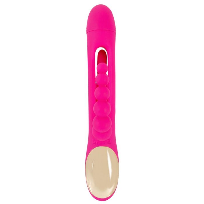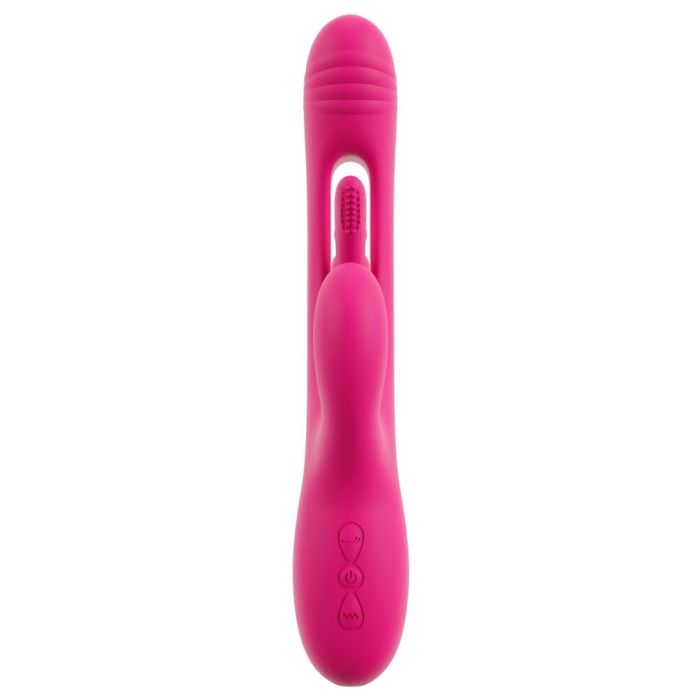 Maak je klaar voor een ongeëvenaarde ervaring met de Drievoudige vibrator met flikkerende tong van Sweet Smile! Deze innovatieve vibrator biedt een drievoudige actie die je op nieuwe climaxen zal brengen. Met zijn unieke ontwerp stimuleert hij niet alleen de vagina, maar ook de clitoris en het anale gebied tegelijkertijd. De zachte, nopjesbedekte tong die heen en weer zwaait, zorgt voor een intense kloppende sensatie in de vagina, terwijl de krachtige vibraties in de kop en de twee stimulators je extra prikkelen. Zodra je deze 3-armige vibrator volledig hebt ingebracht, kun je achterover leunen en genieten van handsfree genot!
