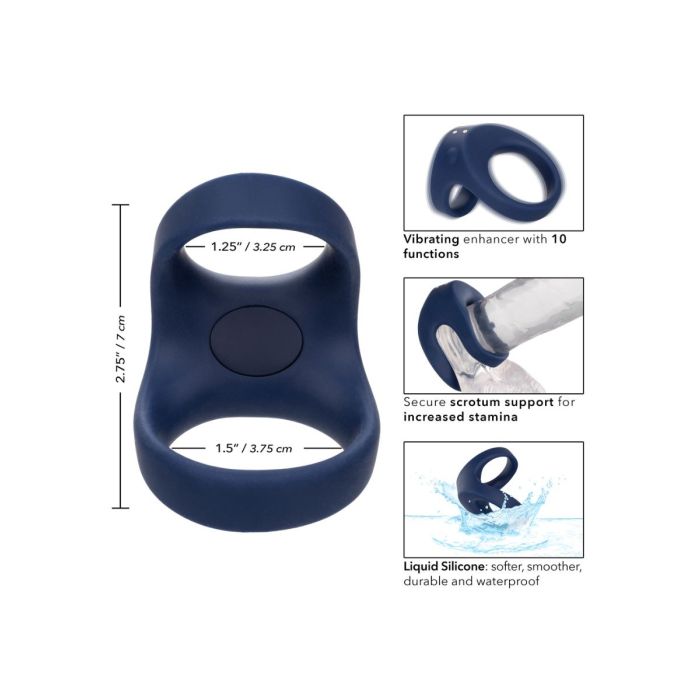 De Dual Cockring Rechargeable Max komt uit de Viceroy serie van het merk CalExotics. Max heeft dubbele ringen om prestaties te verbeteren. De rekbare, flexibele en stevige cockring is gemaakt om het uithoudingsvermogen te vergroten, de gevoeligheid te verbeteren en superieure erectieondersteuning te bieden. De premium vloeibare siliconen zijn gemaakt om zachter, gladder en duurzamer te zijn dan je ooit eerder hebt ervaren. De cockring heeft 10 vibratiestanden die je eenvoudig kunt bedienen op het speeltje zelf. Laad de cockring op in 2.5 uur met de bijgeleverde USB oplaadkabel.